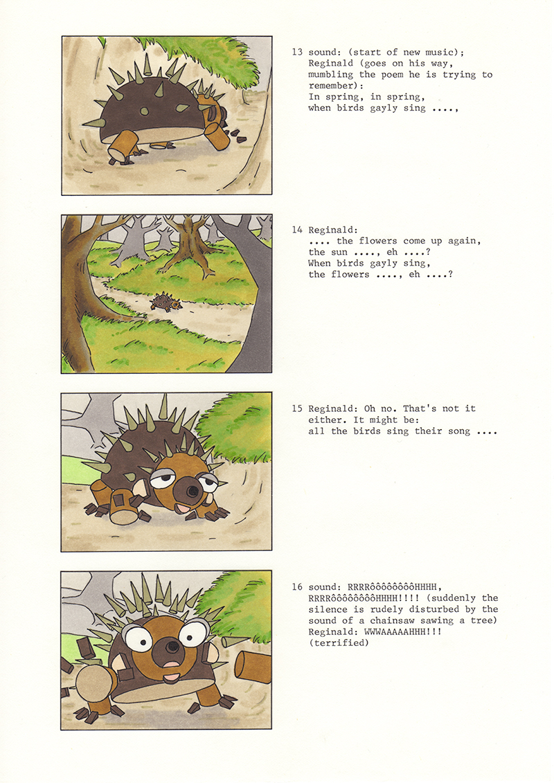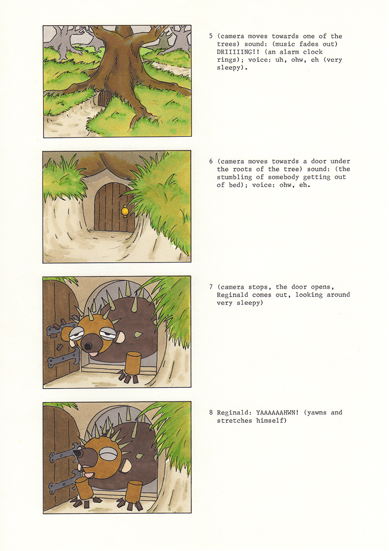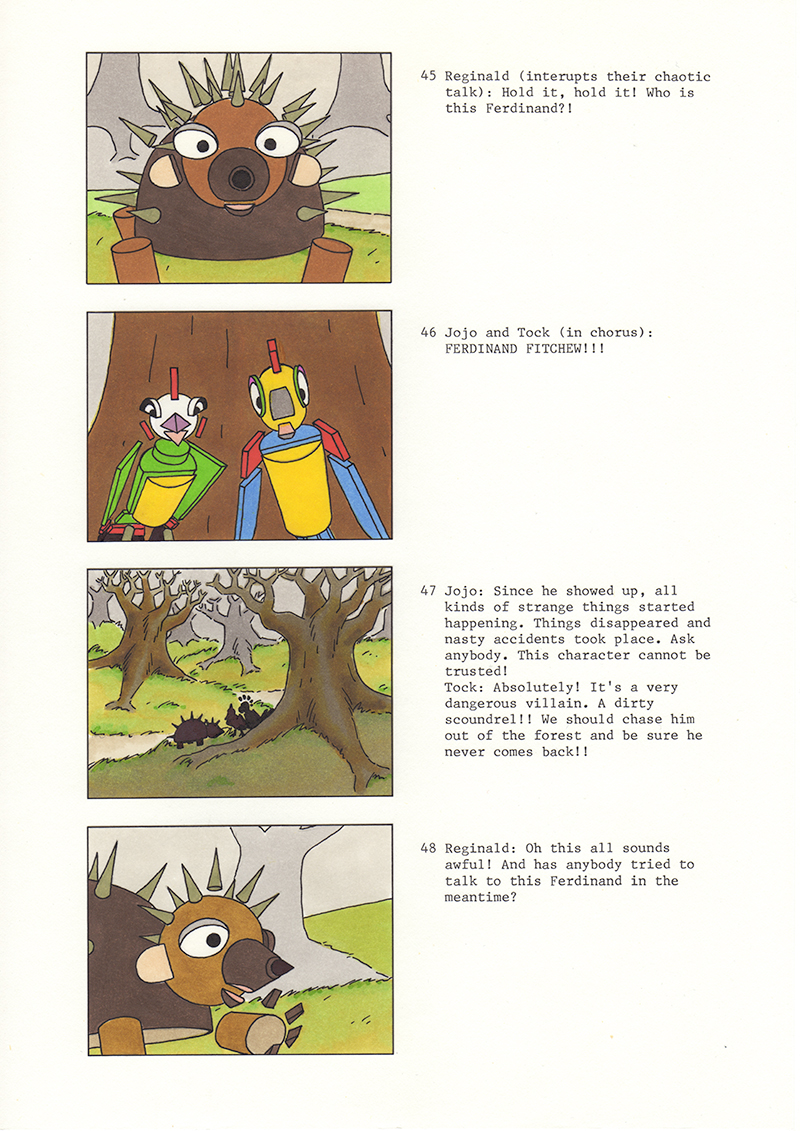 Storyboard voor de 6 min. pilot-aflevering ‘A Stranger in the Forest’.