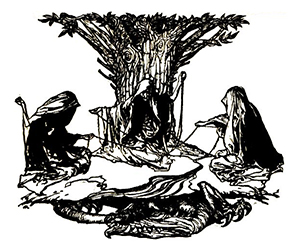 Bij de oerbron spinnen de 3 Nornen de draad van het lot